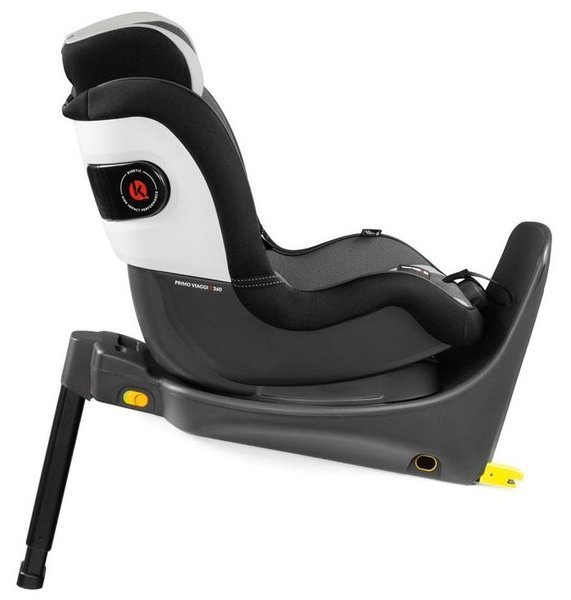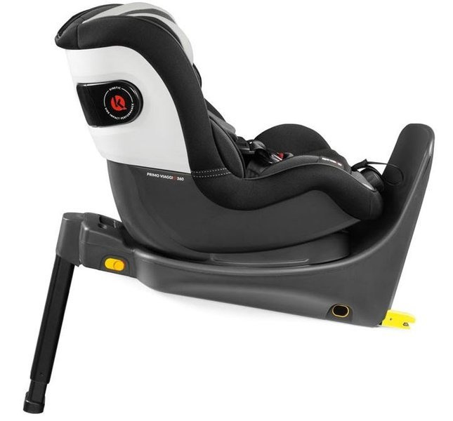 Duża zaletą PegPerego Primo Viaggio 360 jest obrotowa baza, która zwiększa bezpieczeństwo i ułatwia codzienne czynności. Fotelik razem z bazą montuje się na kanapie samochodowej za pomocą złączy Isofix. Dodatkową stabilizację podczas podróży zapewnia regulowana noga podporowa.