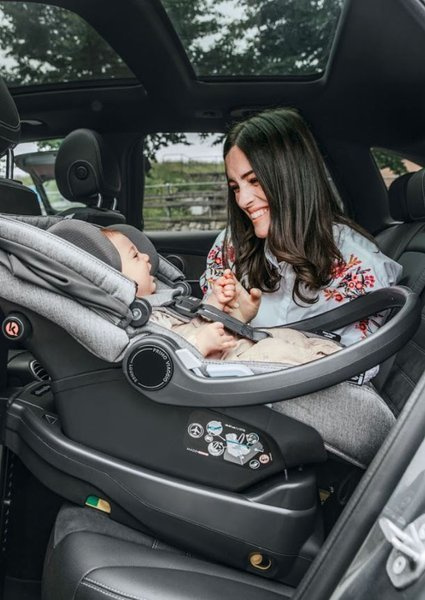 Dzięki systemowi Turn&Go obrócisz fotelik w stronę drzwi, żeby włożyć lub wyciągnąć dziecko lub zapiąć spokojnie pasy.