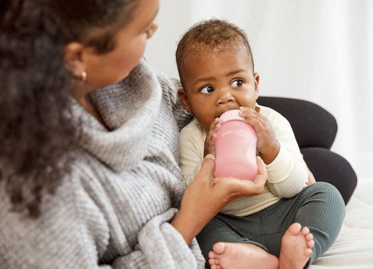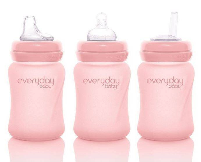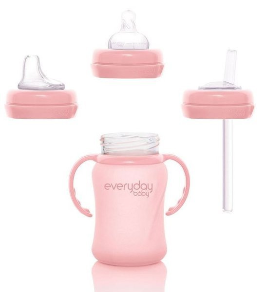 Everyday Baby, Szklana butelka ze smoczkiem S, 150 ml Różowy