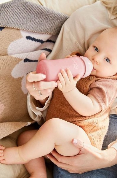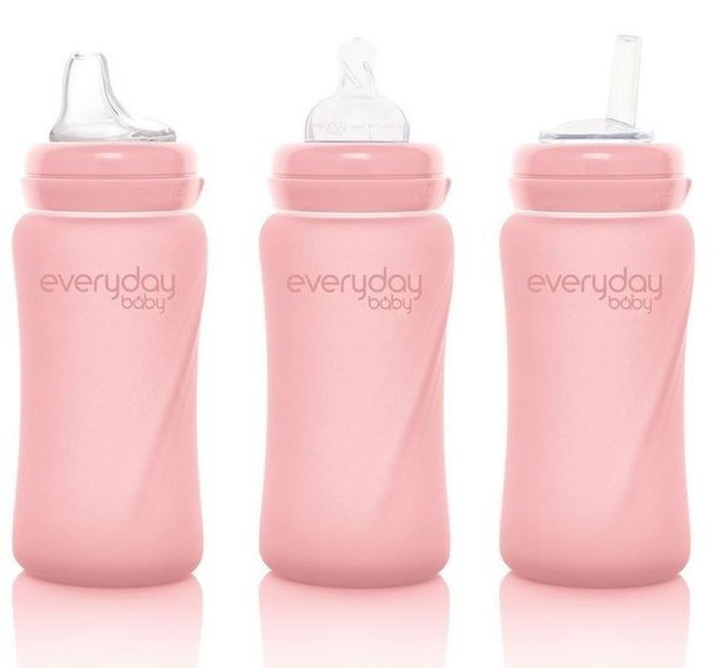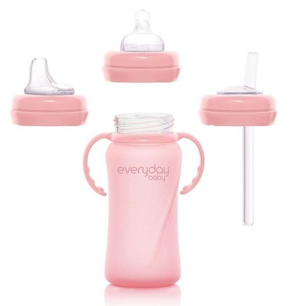 Everyday Baby, Szklana butelka ze smoczkiem M, 240 ml Różowy