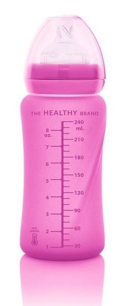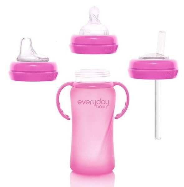 Everyday Baby, Szklana butelka ze smoczkiem M reagująca na temperaturę, 240 ml Wiśniowy