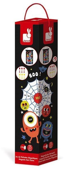 Marka Janod wprowadziła ją do sprzedaży w nowej, kolorowej odsłonie, z zabawnymi ilustracjami nadrukowanymi na planszy. Co ważne- tarcza do gry jest zwijana w rulon, co umożliwi na zabranie jej ze sobą wszędzie. Świetnie sprawdzi się w podróży, czy na rodzinnych wakacjach.