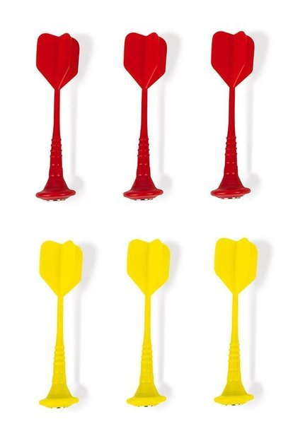 W zestawie znajdziemy także 6 magnetycznych rzutek w kolorze czerwonym i żółtym, dla każdego z graczy. Magnetyczne rzutki z pewnością docenią rodzice. Dzięki takiemu rozwiązaniu - rzutki nie zniszczą powierzchni, na której zostanie zawieszona tarcza.
