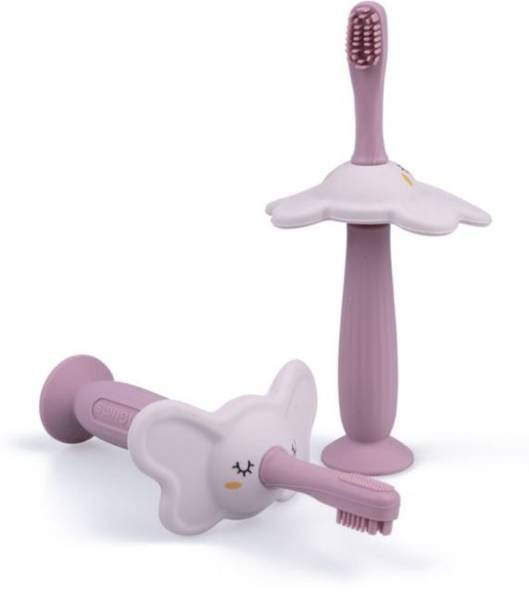 Ta szczoteczka stworzona jest dla każdego malucha już od pierwszego ząbka. 2w1 oznacza, że mamy dodatkową - wymienną końcówkę. Zabawne wykończenie w kształcie słonia przyciągnie uwagę nawet najbardziej wybrednego malucha.