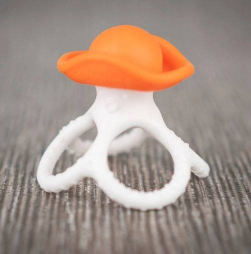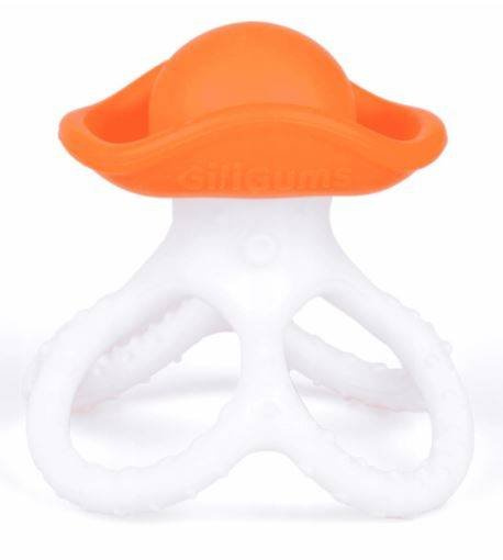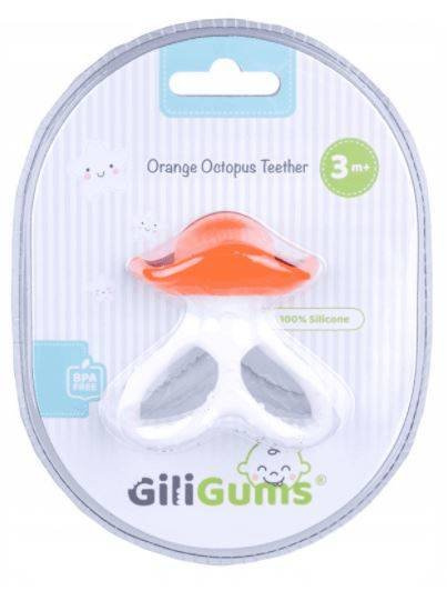 Zabawna ośmiornica w kolorowym kapeluszu nie tylko przyniesie ulgę obolałym dziąsłom ząbkującego dziecka, ale też zapewni mu rozrywkę. Unikatowy kształt i praktyczne otwory ułatwiają chwytanie i utrzymanie gryzaka w małych rączkach. Ośmiorcnica dostępna w trzech różnych kolorach do wyboru: pomarańczowym, miętowym oraz niebieskim.