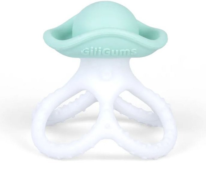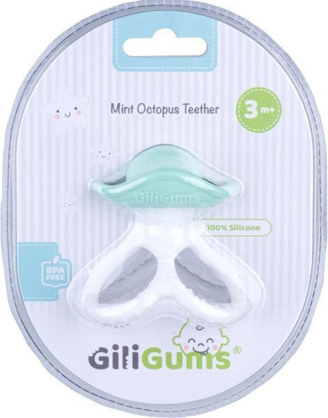Zabawna ośmiornica w kolorowym kapeluszu nie tylko przyniesie ulgę obolałym dziąsłom ząbkującego dziecka, ale też zapewni mu rozrywkę. Unikatowy kształt i praktyczne otwory ułatwiają chwytanie i utrzymanie gryzaka w małych rączkach. Ośmiorcnica dostępna w trzech różnych kolorach do wyboru: pomarańczowym, miętowym oraz niebieskim.