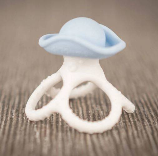 Zabawna ośmiornica w kolorowym kapeluszu nie tylko przyniesie ulgę obolałym dziąsłom ząbkującego dziecka, ale też zapewni mu rozrywkę. Unikatowy kształt i praktyczne otwory ułatwiają chwytanie i utrzymanie gryzaka w małych rączkach. Ośmiorcnica dostępna w trzech różnych kolorach do wyboru: pomarańczowym, miętowym oraz niebieskim.