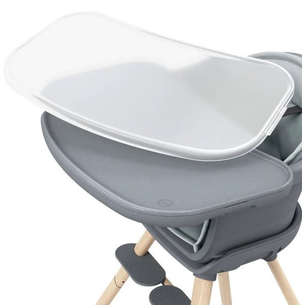 Mając na uwadze kwestie praktyczne, producent zastosował antypoślizgowe osłonki na nóżki. Sprawiają one, że produkt nie porysuje podłogi w żadnej konfiguracji. Co równie ważne, każdy element krzesełka da się łatwo wyczyścić. Materiałowe siedzisko można wyprać w pralce, a tacka i jej nakładka nadaje się do mycia w zmywarce. Całą resztę z łatwością wytrzemy mokrą ściereczką.