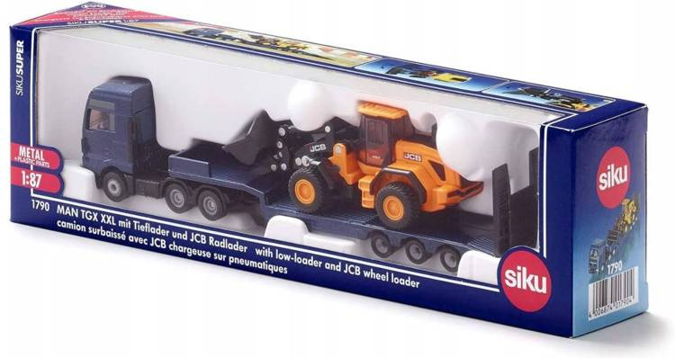 Każde zlecenie w firmie logistycznej jest inne, nigdy nie wiadomo po co przyjdzie nam jechać. Zestaw od marki Siku ma dla nas ciężarówkę Man Truck With Low Loader And Jcb Wheel Loader wraz z naczepą, która przyda nam się do transportu ciężkich sprzętów jak na przykład koparko ładowarka. Szczegółowo odwzorowany model z pewnością zainteresuje Twojego szkraba i zachęci go do kreatywnych zabaw. Nie ma na co czekać! Czas na wspaniałą zabawę! Zabawki Siku zostały starannie wykonane z wysokiej jakości materiałów. Bardzo dokładnie odwzorowują wszelkie pojazdy. Mają niewielkie wymiary, co ułatwi przechowywanie. Są w pełni bezpieczne i nie zagrażają życiu ani zdrowiu dziecka. Mogą służyć również, jako ozdoba pokoju dziecięcego. Zestaw z ciężarówką jest idealnym pomysłem na prezent dla dzieci od 3 roku życia.