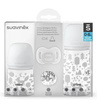 Suavinex zestaw zawiera butelkę o pojemności 150 ml ze smoczkiem o wolnym przepływie dla najmłodszych, butelkę 270 ml dla starszych dzieci z średnim przepływem, smoczek do użytku już od pierwszych dni życia maluszka oraz klips do smoczka.