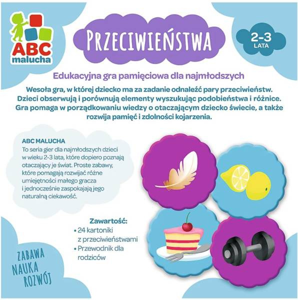 ABC Malucha: Przeciwieństwa to wesoła gra, w której dziecko ma za zadanie odnaleźć pary przeciwieństw. Dzieci obserwują i porównują elementy, wyszukując podobieństwa i różnice.