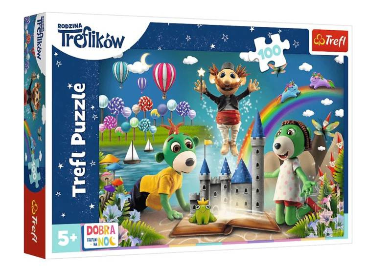 Puzzle Bajkowy Wieczór, to wielobarwna układanka z motywem przewodnim z bajki Rodzina Treflików.