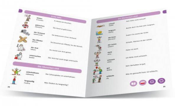 Interaktywny Słownik języka niemieckiego z Albi, w którym znajdziesz ponad 1000 haseł podzielonych na 11 rozdziałów tematycznych. Książka zawiera dwie wersje językowe – polską i niemiecką.