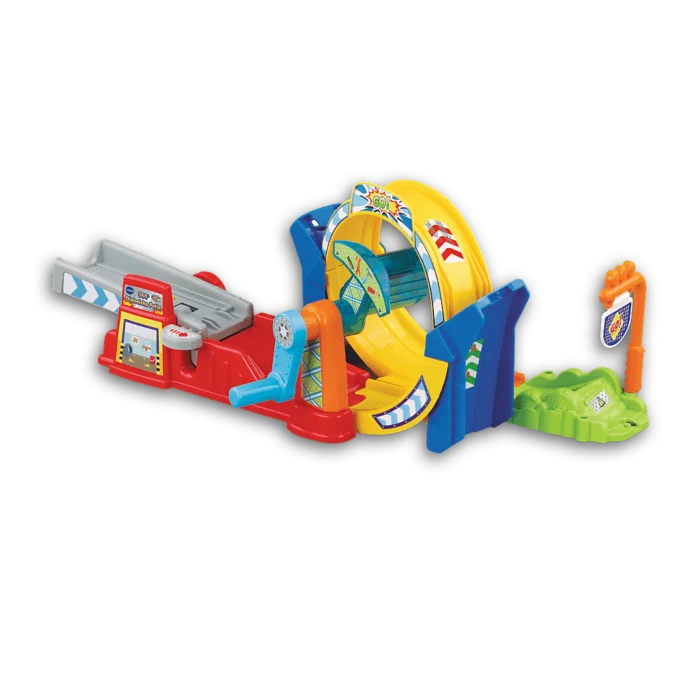 Zestaw Diabelska Pętla 360° z serii Tut Tut Autka posiada 2 możliwości kombinacji torów. Wskocz na tor i wykonaj autkiem obrót o 360°! Zabawka posiada 2 Punkty rozpoznające pojazdy. W zestawie znajduje się ruchoma, obrotowa dźwignia, która rozpędza autko do przejechania pętli. Zabawka wspiera rozwój motoryczny dziecka!