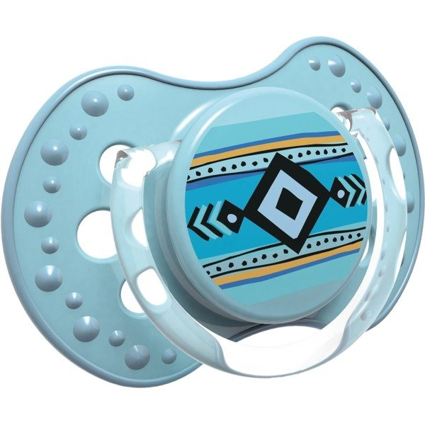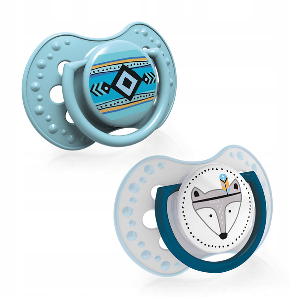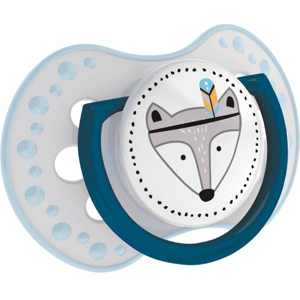 Tarcza smoczka ma kształt umożliwiający swobodne oddychanie przez nos,a dziurki w niej zapobiegają podrażnieniom, dzięki stałemu przepływowi powietrza.
