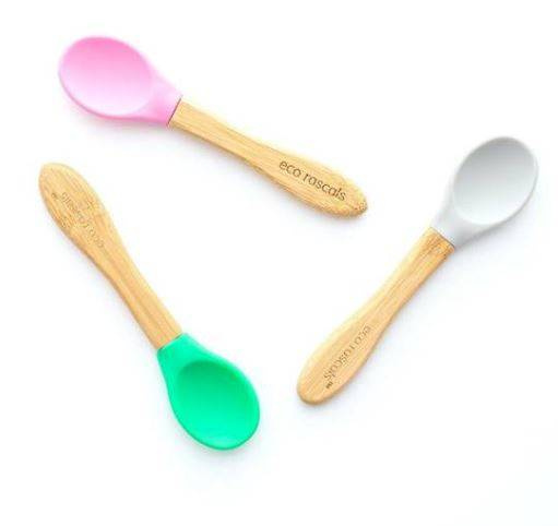 Ecorascals Zestaw 3 Łyżeczek Bambusowych z Silikonową Nakładką