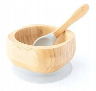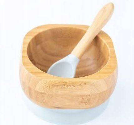 Ecorascals Miseczka Bambusowa Głęboka z Przyssawka i Łyżeczką Szara