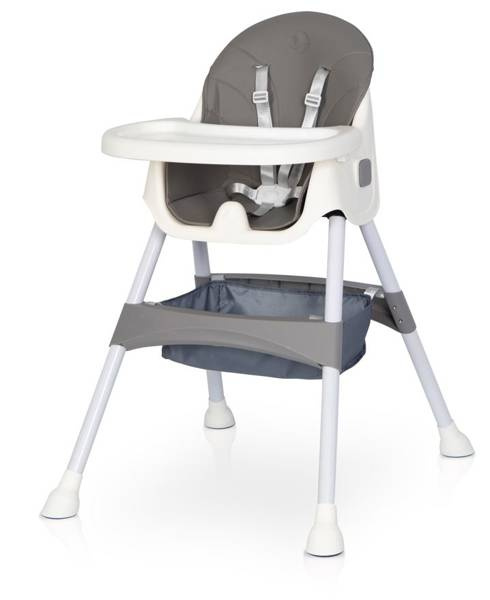 W tej konfiguracji krzesełko posiada krótkie nogi oraz zamontowaną tackę. Podnóżek może być zamontowany lub zdemontowany w zależności od wzrostu dziecka. Krzesełko w takiej formie pozwala wygodnie nakarmić nieco większe dziecko, które już samodzielnie chodzi. Dzięki możliwości zapięcia dziecka w pasy oraz zabezpieczenia go tacką, łatwiej będzie Ci utrzymać je w jednym miejscu na czas karmienia.