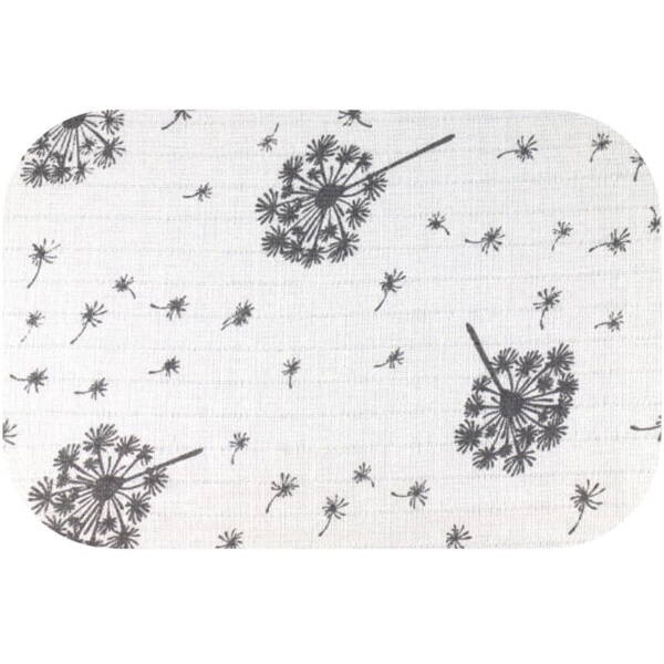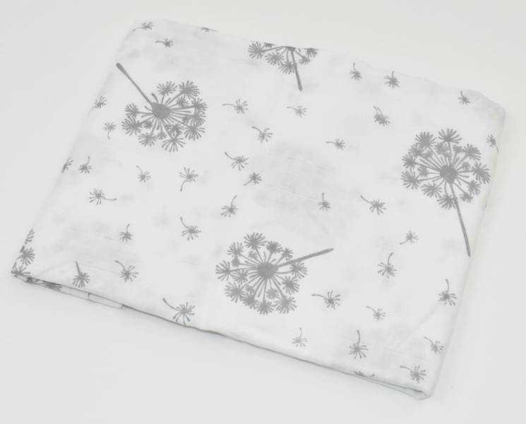 Tetrowa pieluszka posiada print wykonany w przyjemnych dla oka kolorach z motywem dmuchawców.
