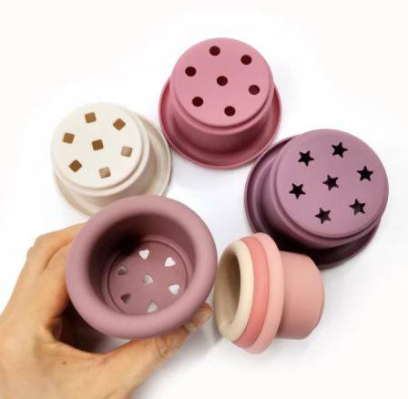 Idealne akcesoria do gryzienia. Pozwala dziecku ćwiczyć koordynację ręka-oko, pobudza kreatywność, cierpliwość oraz umiejętności rozwiązywania problemów (jak ułożyć piramidę by się nie rozpadała). Pozwala odkryć różnice pomiędzy dużym a małym.