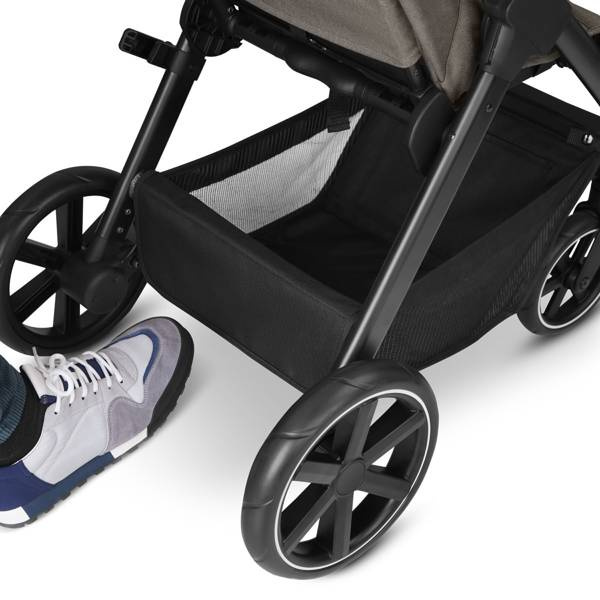 Avusowi niczego nie brakuje również pod względem komfortu pchania: hamulec postojowy znajduje się bezpośrednio na prawym tylnym kole, co sprawia, że tylna oś jest zbędna. To nie tylko oszczędza wagę i miejsce, ale także daje więcej miejsca na nogi podczas pchania wózka. Prawdziwa zaleta, szczególnie dla wysokich rodziców.