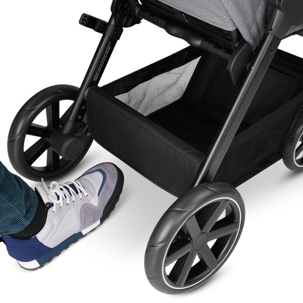 Avusowi niczego nie brakuje również pod względem komfortu pchania: hamulec postojowy znajduje się bezpośrednio na prawym tylnym kole, co sprawia, że ​​tylna oś jest zbędna. To nie tylko oszczędza wagę i miejsce, ale także daje więcej miejsca na nogi podczas pchania wózka. Prawdziwa zaleta, szczególnie dla wysokich rodziców.