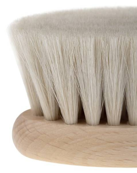 Pierwsza szczotka do włosów przeznaczona dla najmłodszych dzieci. Wykonana z naturalnego koziego włosia z drewnianą ( drewno bukowe) rączką o kształcie elipsy. Rozmiar szczotki jest idealny do małej główki niemowlaka. Delikatne włosie jest idealne dla wrażliwej skóry, nie elektryzuje włosów. Masaż wykonany tą szczotką doskonale wycisza i relaksuje, jest przyjemny dla mamy i dziecka.