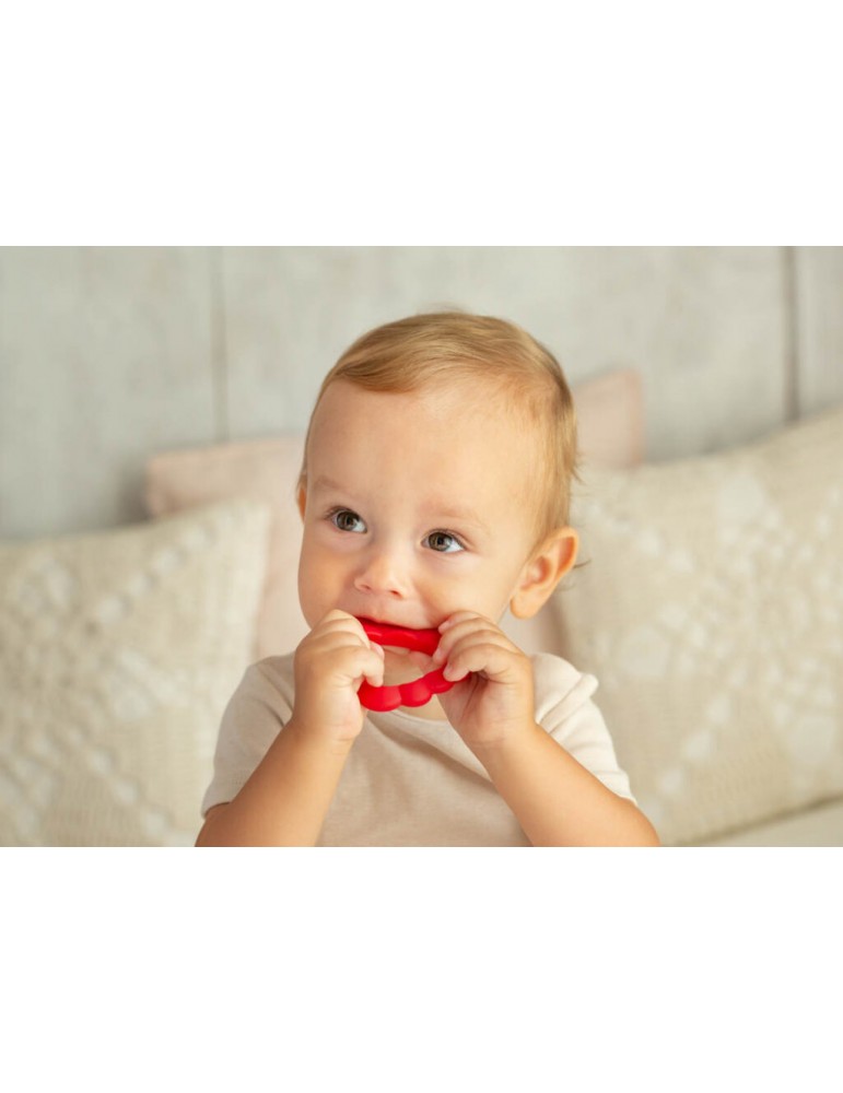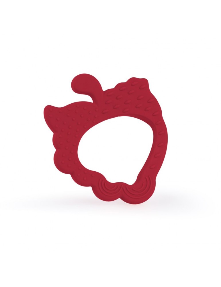 Soczyście czerwona truskaweczka przyniesie ulgę w ząbkowaniu, a jej energetyczny kolor wprawi malucha w pozytywny nastrój. Gryzak wykonany jest w 100% z bezpiecznego silikonu, dzięki czemu bez trudu utrzymasz go w czystości. Truskawkę zdobią wypustki, które podczas gryzienia delikatnie masują obolałe dziąsła malucha.