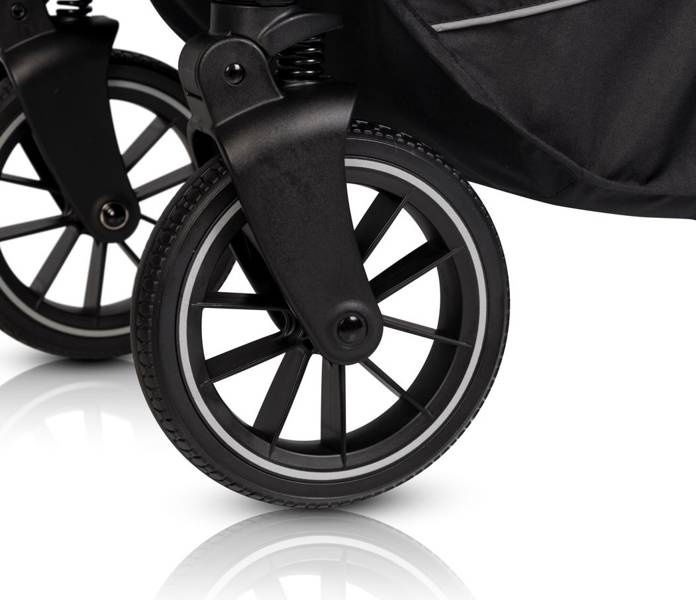 AVEC posiada duże koła z gumową oponą oraz bardzo dobrą amortyzację zarówno z tyłu, jak i z przodu. Jeśli jednak szukasz dodatkowego komfortu dla swoich dzieci, to marka CAVOE oferuje możliwość dokupienia dodatkowego kompletu kół pompowanych.