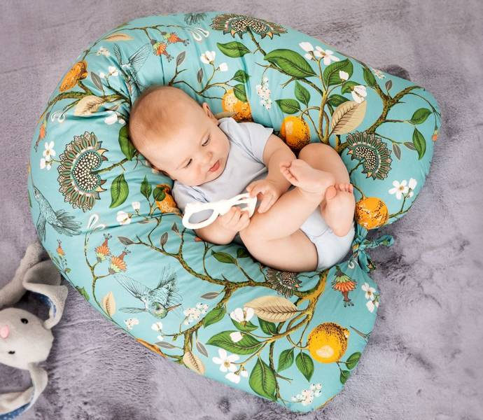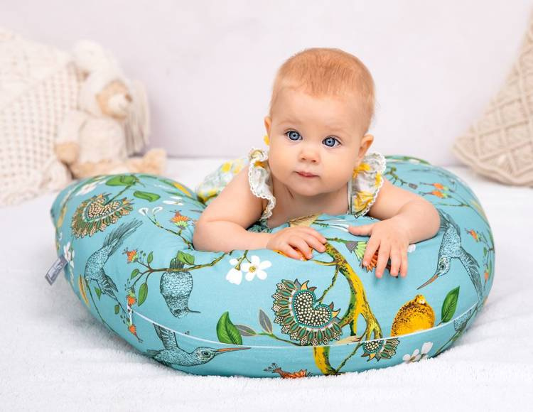 Dzięki dodatkowym sznurowadłom, za pomocą poduszki można również bezpiecznie i prawidłowo ułożyć małe dziecko. Dlatego też wyrób można zastosować w przypadku trudności w karmieniu i nieprawidłowym karmieniu.