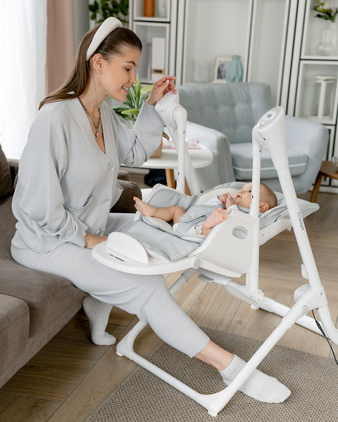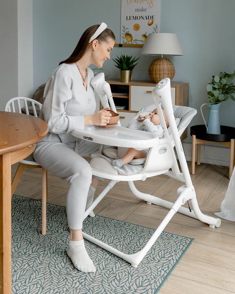 Carrello Triumph to krzesełko do karmienia, leżak i huśtawka z automatycznym cichym ruchem. Funkcje krzesełka uzupełniają się wzajemnie, co czyni Triumph niezastąpionym towarzyszem dla rodziców.