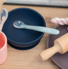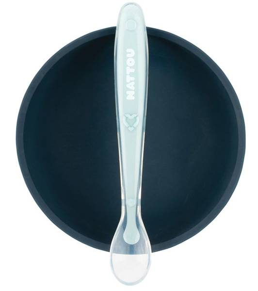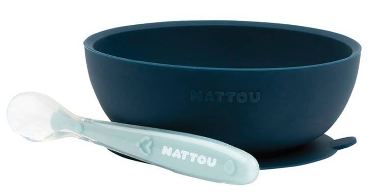 Dwuczęściowy silikonowy zestaw naczyń Nattou wykonany z miękkiego silikonu jest bardzo praktyczny, naczynia są łatwe do trzymania i antypoślizgowe.