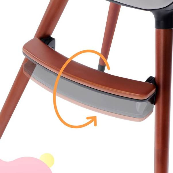 Krzesełko wyposażono w wygodny podnóżek z 2-stopniową regulacją. W kilka chwil dopasujesz jego wysokość i ustawienie do wzrostu dziecka. Dba o komfort podczas posiłku oraz jednocześnie wspiera przyjmowanie prawidłowej postawy podczas jedzenia.