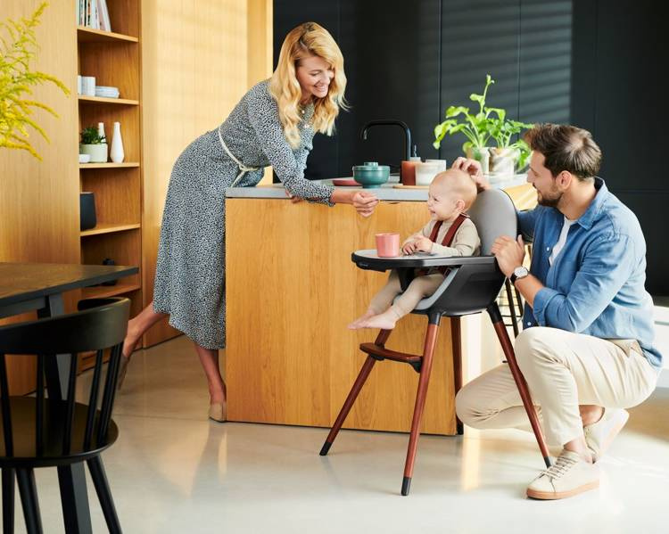 Krzesełko do karmienia FINIX ma z tyłu oparcia praktyczny uchwyt, który ułatwia przestawianie mebelka. Jest lekkie, dzięki czemu bez wysiłku przeniesiesz je sprzed wyspy kuchennej do stołu w jadalni.