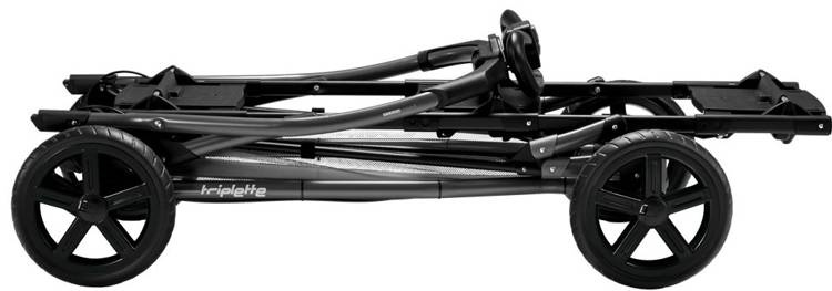 Wszystkie koła są amortyzowane oraz dodatkowo wzbogacone systemem Soft-Ride, co ułatwia i korzystnie wpływa na jakość prowadzenia wózka. Na tylnych kołach znajduje się hamulec. WózekTripelette składa się do niewielkich rozmiarów. Dodatkowo na stelażu znajduje się uchwyt ułatwiający przenoszenie złożonego wózka.