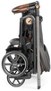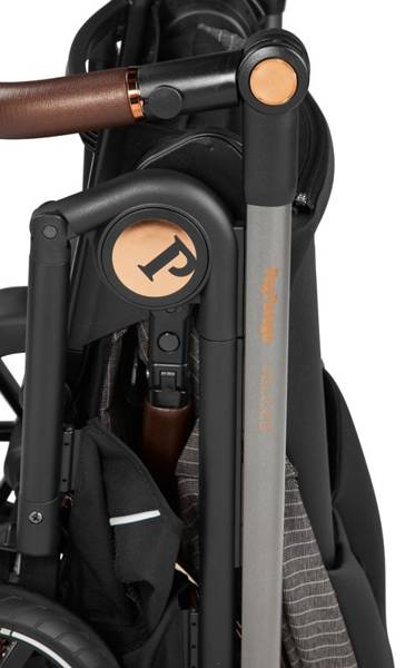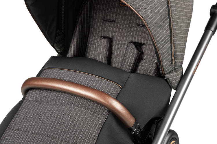 Łamana rączka z łatwością dostosowuje się do rodziców różnego wzrostu, a także pozwala zachować więcej miejsca podczas przechowywania. Obszerna budka z filtrem UV 50+ posiada dodatkowe panele chroniące przed słońcem i wiatrem. Pojemny kosz z wzmocnionym dnem został wykończony elementami odblaskowymi. Duże, przekładane siedzisko wyposażone w pięciopunktowe pasy bezpieczeństwa przeznaczone jest dla dzieci do 22 kg. Oparcie i podnóżek posiadają wielostopniową regulację dla komfortowej pozycji siedzącej i leżącej dziecka. Pałąk ze skóry ekologicznej otwiera się z obu stron.