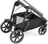Łamana rączka z łatwością dostosowuje się do rodziców różnego wzrostu, a także pozwala zachować więcej miejsca podczas przechowywania. Obszerna budka z filtrem UV 50+ posiada dodatkowe panele chroniące przed słońcem i wiatrem. Pojemny kosz z wzmocnionym dnem został wykończony elementami odblaskowymi. Duże, przekładane siedzisko wyposażone w pięciopunktowe pasy bezpieczeństwa przeznaczone jest dla dzieci do 22 kg. Oparcie i podnóżek posiadają wielostopniową regulację dla komfortowej pozycji siedzącej i leżącej dziecka. Pałąk ze skóry ekologicznej otwiera się z obu stron.