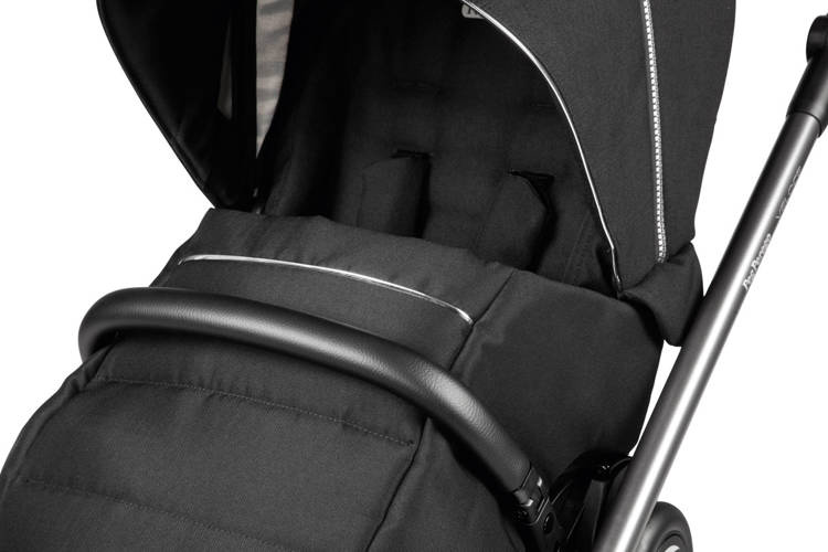 Łamana rączka z łatwością dostosowuje się do rodziców różnego wzrostu, a także pozwala zachować więcej miejsca podczas przechowywania. Obszerna budka z filtrem UV 50+ posiada dodatkowe panele chroniące przed słońcem i wiatrem. Pojemny kosz z wzmocnionym dnem został wykończony elementami odblaskowymi. Duże, przekładane siedzisko wyposażone w pięciopunktowe pasy bezpieczeństwa przeznaczone jest dla dzieci do 22 kg. Oparcie i podnóżek posiadają wielostopniową regulację dla komfortowej pozycji siedzącej i leżącej dziecka. Pałąk ze skóry ekologicznej otwiera się z obu stron.