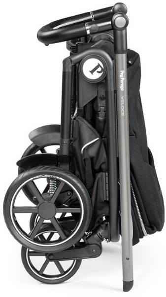 Spacerówka Veloce to niezwykle kompaktowy i lekki wózek o szerokości 51 cm i wadze 10,7 kg. Gumowe koła zostały wykończone odblaskowymi elementami dla lepszej widoczności. Zastosowany system Soft-Ride, łożyska kulkowe oraz bardzo dobra amortyzacja  zapewniają komfortową jazdę w każdym terenie. Przednie koła o średnicy 18 cm obracają się w zakresie 360º, po zniesieniu blokad w nadkole. Między dużymi tylnymi kołami o średnicy 25 cm znajduje się dźwignia hamulca.Veloce posiada scentralizowany system składania wózka jedną ręką, bez potrzeby schylania się czy klękania. Po złożeniu produkt jest bardzo kompaktowy i stoi samodzielnie.