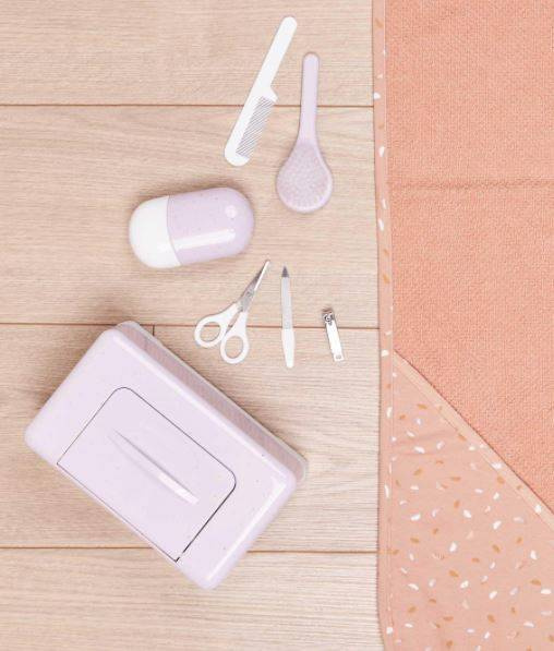 Dzięki ładnemu zestawowi do paznokci dla dzieci holenderskiej marki Luma® Babycare można łatwo i bezpiecznie obcinać i opiłowywać paznokcie maluszka. Zaokrąglone końcówki i okrągły kształt nożyczek chronią dziecko przed skaleczeniem. Komplet składa się z 3 elementów – nożyczki, pilnik i obcinacz/cążki do paznokci, całość zapakowana w wygodne etui.