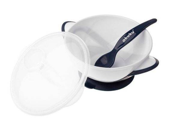 Miseczka na przyssawce z łyżeczką to idealny produkt do karmienia dziecka. Pokrywka szczelnie chroni pokarm, specjalna komora przeznaczona jest do przechowywania łyżeczki, dzięki czemu jej nie zgubimy oraz zachowamy ją w czystości. Gumowa przyssawka uniemożliwia przesuwanie się miseczki po stole chroniąc jednocześnie pokarm przed rozlaniem. Wykonana w całości z bezpiecznych materiałów przeznaczonych do kontaktu z żywnością, nie zawiera bisfenolu A (0% BPA).