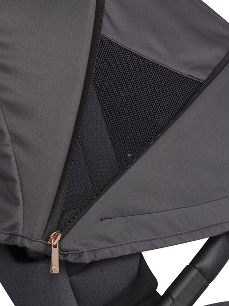 Jeśli już o budce mowa, warto zauważyć, że jest obszerna i rozsuwana, więc osłoni Twoje maleństwo od mocnego słońca czy deszczu i zapewni mu odrobinę prywatności podczas drzemki. Dodatkowo specjalne panele wentylacyjne umieszczone w budce zapewniają odpowiednią odpowiednią cyrkulację powietrza podczas letnich spacerów.