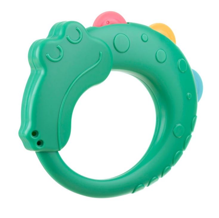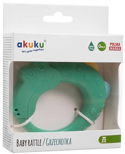 Każdy maluszek ma ulubioną grzechotkę, a to zabawka, która stymuluje koordynację wzrokowo słuchową dziecka. Grzechotka Krokodyl marki Akuku została wykonana z bezpiecznynego tworzywa, całkowicie wolnego od szkodliwego BPA. Jej kształt został dostosowany do najmłodszych, dlatego nie posiada żadnych ostrych krawędzi, a wypustki pozwalają rozwijać zmysł dotyku. Grzechotka Krokodyl pasuje do małych rączek, dzięki temu maluszek może ćwiczyć chwytanie.
