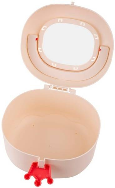 - w środku znajduje się specjalna kratka, która z jednej strony umożliwia suszenie zabawek po umyciu, z drugiej strony może spełniać funkcję sitka do przesiewania piasku podczas zabawy w piaskownicy,