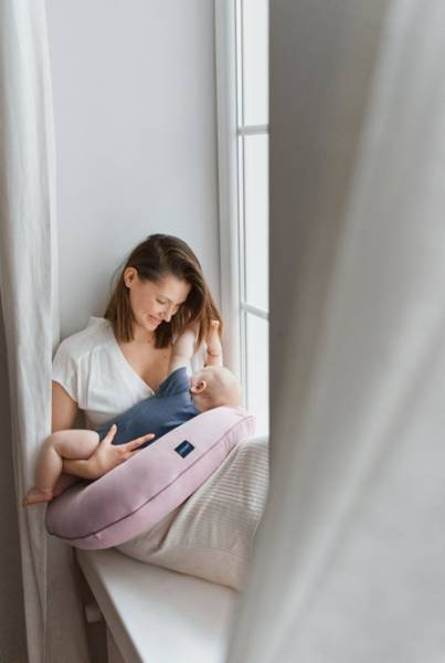 Środkowa część poduszki została lekko pogrubiona i powiększona, dzięki czemu dziecko jest zawsze ułożone na właściwej wysokości – tuż przy piersi mamy. Taka budowa umożliwi mamie przyjęcie wygodnej, wyprostowanej, odciążającej kręgosłup pozycji podczas karmienia piersią, równocześnie zapewniając dziecku stabilne i bezpieczne oparcie.