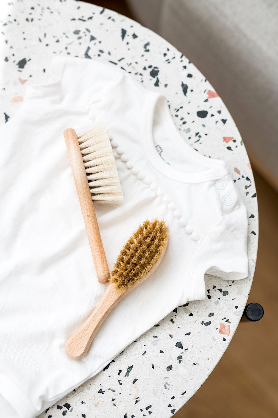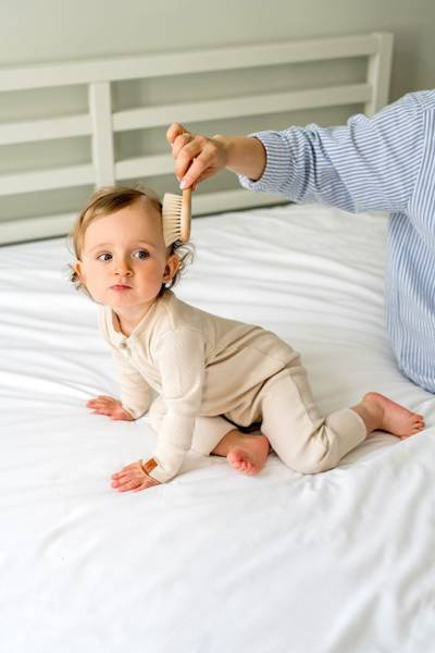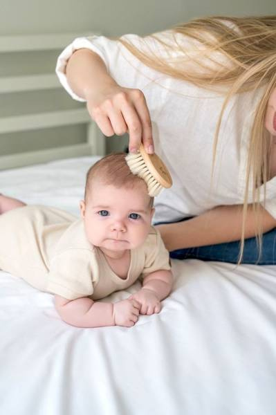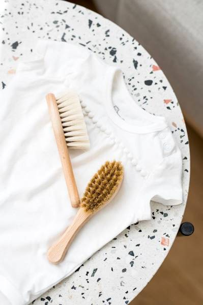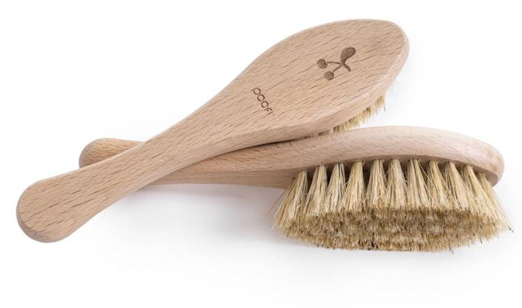 Delikatna kozina przyda się do łagodnego masażu główki i ciała noworodka oraz do czesania pierwszych delikatnych włosków. Szczotka z włosiem ze szczeciny – nieco twardsza, pomoże zwalczyć ciemieniuszkę lub rozczesze gęstą czuprynę