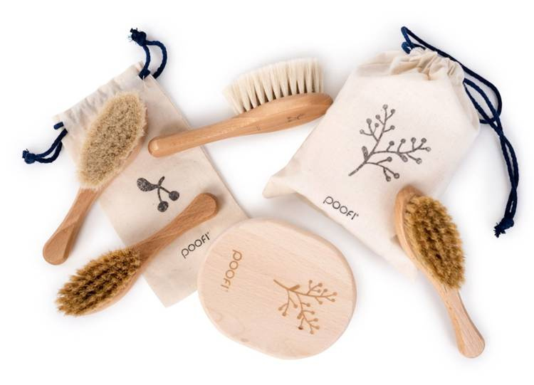 Szczotki Poofi to naturalne produkty, w surowej bukowej oprawie.