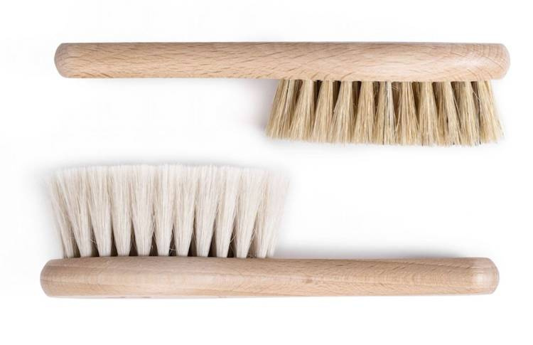 Obie szczotki oprawione są w drewno bukowe, a włosie użyte do ich produkcji jest w 100% naturalne.