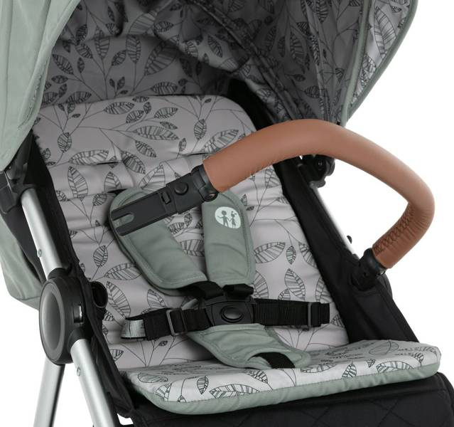 • Obrotowy pałąk wykonany z eleganckiej brązowej eko-skóry dla większego bezpieczeństwa dziecka. Pałąk można szybko odczepić z dowolnej strony