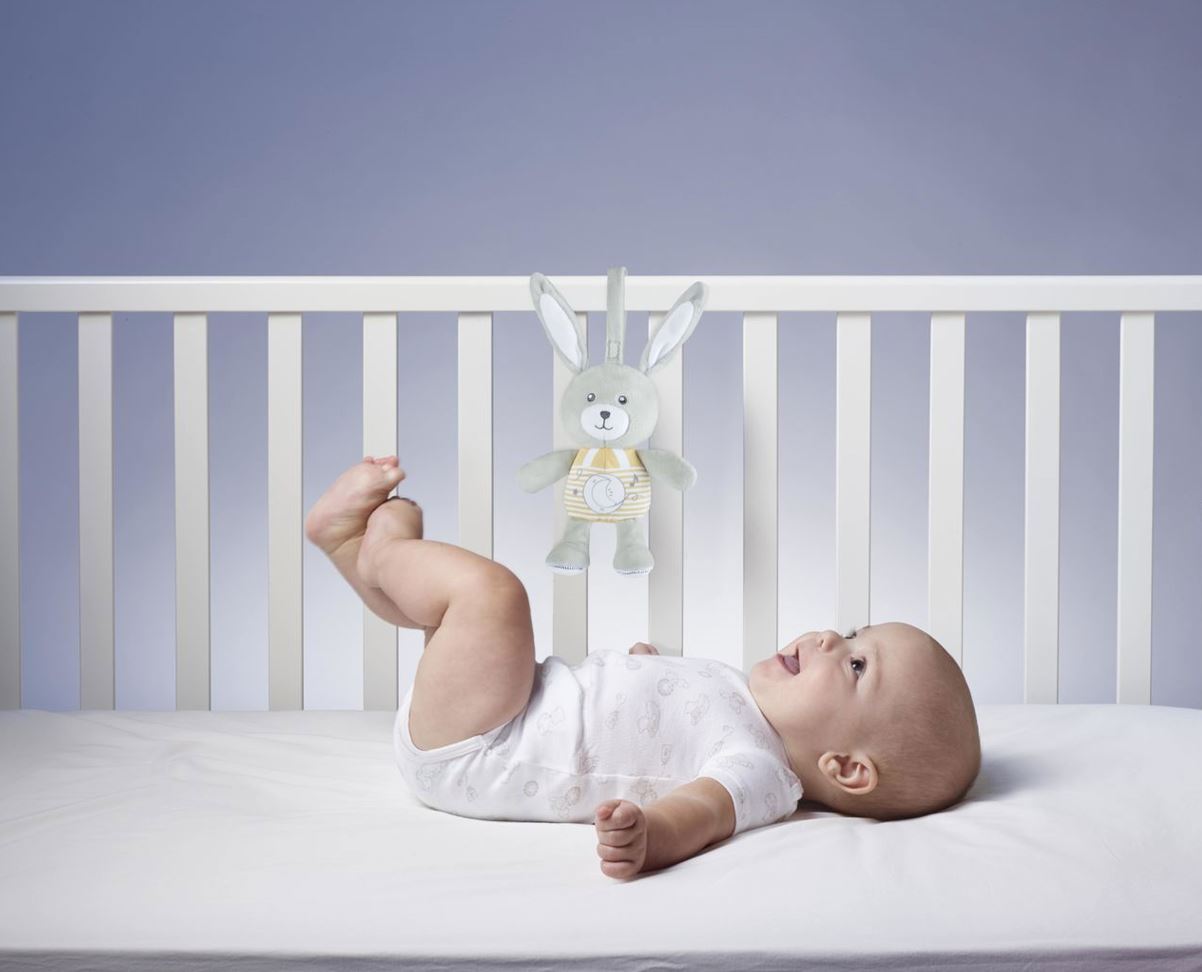Praktycznym rozwiązaniem specjalny troczek, dzięki któremu możesz zawiesić króliczka w łóżeczku lub wózku, tak by mogła towarzyszyć Twojemu maluchowi podczas zasypiania.